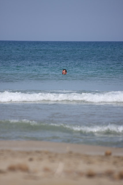 - 14h30 : nous voilà de retour sur la plage de Molasche. J’adore les pique-nique sur le sable. Il y a un peu de monde sur la plage, mais c’est raisonnable et pas bruyant. Après le déjeuner, petite sieste sur le sable puis baignade pour Jérôme. L’eau n’est pas très chaude, mais ce n’est pas pire que les eaux du Cassibile hier. Pour moi, lecture + musique, un vrai moment de détente !!