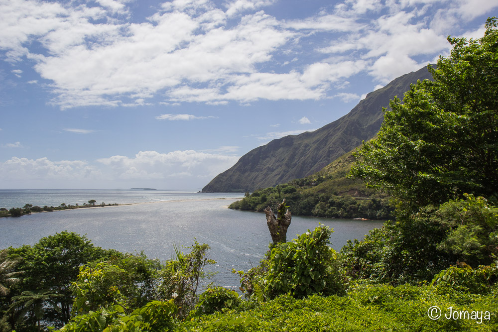 Nous débarquons et poursuivons la route qui s’élève et nous offre un superbe point de vue sur la Ouaïème et son embouchure. C’est la que débute la corniche calédonienne et ses cascades, une zone encore sauvage.